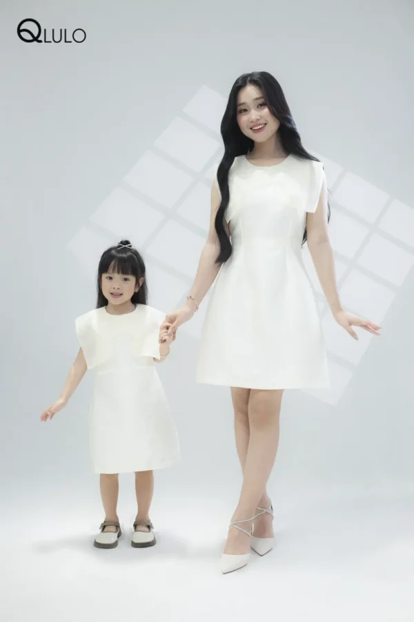 Đầm thiết kế màu trắng kem, phù hợp mẹ và bé khi dự tiệc